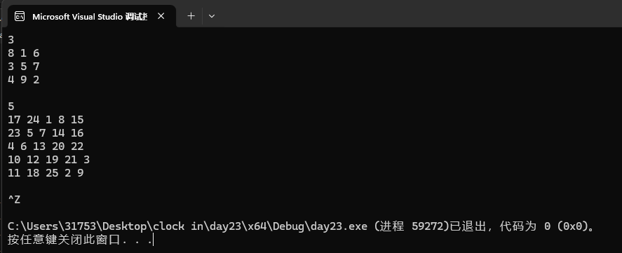 有了以上的方法,明明就可以轻易地构造出任意的n阶魔方阵。