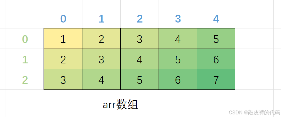 int arr[3][5] = { {1,2,3,4,5},{2,3,4,5,6},{3,4,5,6,7} };