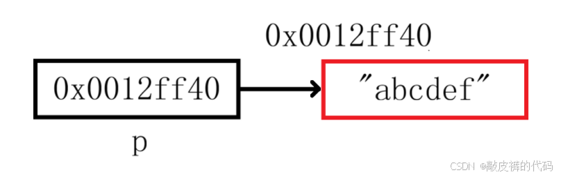 代码char* p = "abcdef"; 其实不是把字符串 abcdef\0 存放在 p 中,而是把第一个字符的地址存放在 p中。
