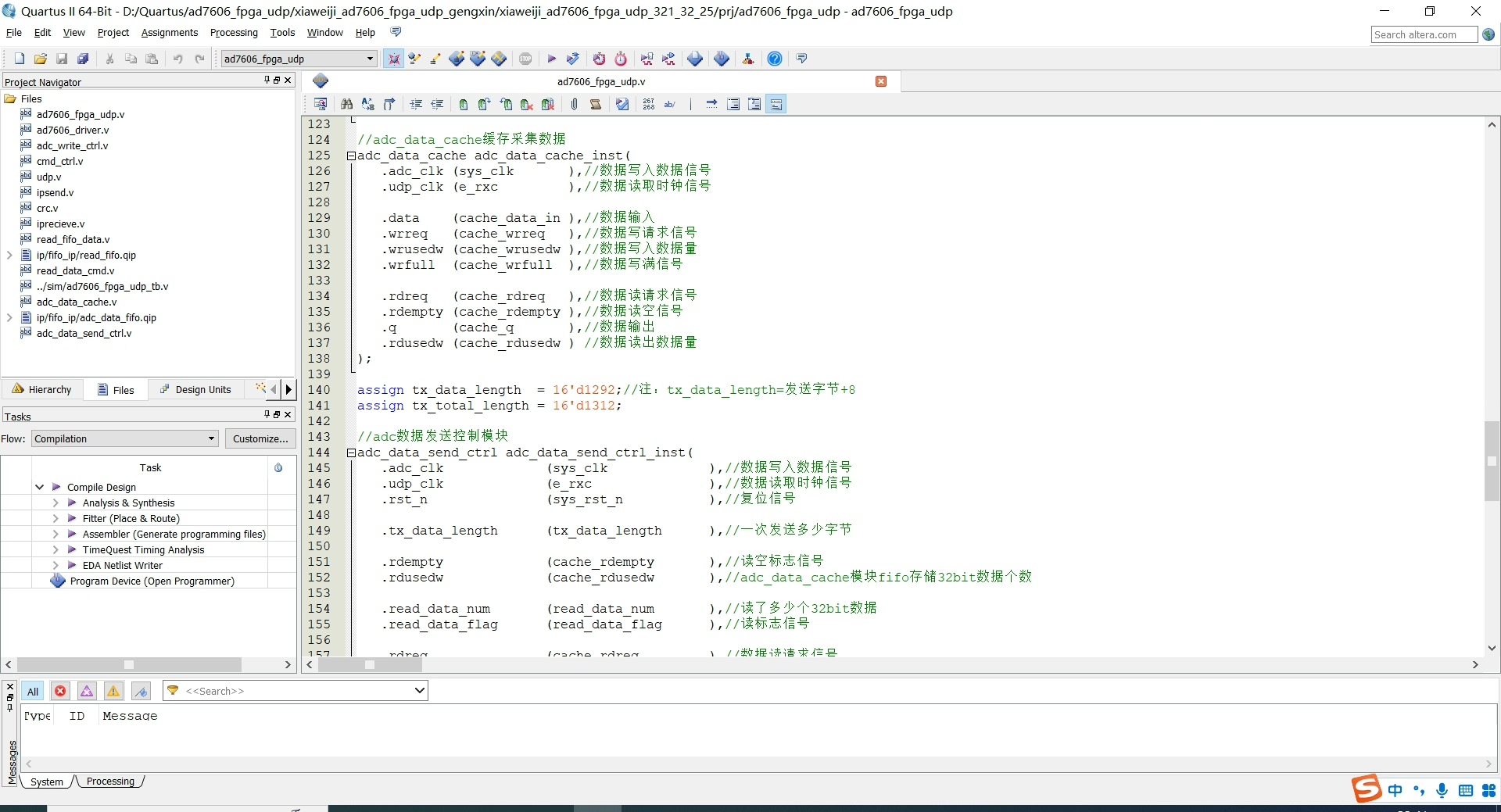 代码分析:这个 udp_send 模块用于将采集到的 16 位数据分成高 8 位和低 8 位依次发送。通过一个状态机来控制发送过程,状态 0 发送高 8 位,状态 1 发送低 8 位,然后回到初始状态。