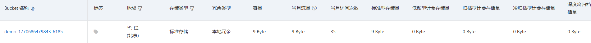 出现这个则运行成功,但是Bucket被删除掉了,看不到云存储的Bucket,可以将删除代码注释掉来验证