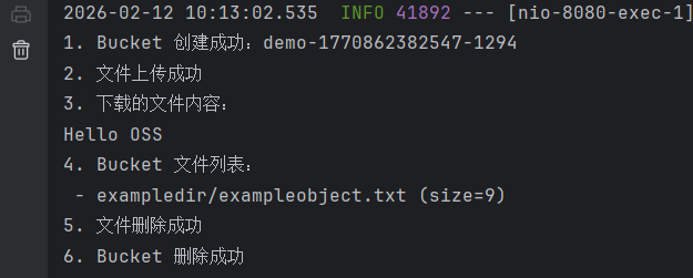 System.out.println("1. Bucket 创建成功:" + bucketName);