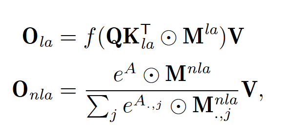 把各 chunk 分成两个集合,然后构造两种 mask 矩阵 M l a M_{la} Mla 和 M n l a M_{nla} Mnla 用于 attention 计算