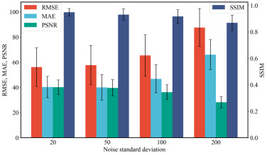 本方法(如图1所示)采用双分支注意力神经网络去噪噪声CT图像。该框架通过包含自适应高频优化(AHFO)模块、双模态特征融合(DMFF)模块、时间嵌入(TEB)模块和边缘感知边界约束(EABC)损失函数,增强了传统扩散范式,提升了模型的特征提取能力。在反向扩散步骤中,条件分支整合CBCT图像以引导主CT生成分支中当前噪声CT图像的恢复过程。自适应高频优化模块利用FFT在CBCT分支中捕捉全局信息,WT在CT生成分支中捕捉局部和精细结构信息,并通过可学习的加权矩阵优化子带特征。双模态特征融合模块采用注意力机制,有效地融合了CT分支的重建特征和CBCT分支的条件特征。时间嵌入模块在模型的编码器和解码器中引入时间信息,通过多层感知机动态调整模型输出特征。损失函数由MSE损失、L1损失和EABC损失组成,EABC损失通过拉普拉斯算子和二值化生成边缘图,确保合成CT图像的边界保真度。为提高推理速度,本研究采用了DDIM的策略,通过选择时间步子集进行加速。实验数据集包括内部和外部盆腔数据集以及头部数据集,所有数据均通过SyN非线性配准进行对齐。模型性能通过RMSE、MAE、SSIM和PSNR等指标进行评估,并与多种现有方法进行比较。所有实验均在PyTorch框架下,使用NVIDIA GeForce RTX 3090 GPU进行,并采用AdamW优化器和余弦退火学习率调度。