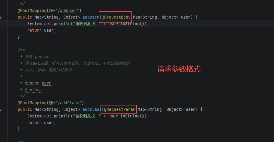 public Map<String, Object> addClass(@RequestParam Map<String, Object> user) {