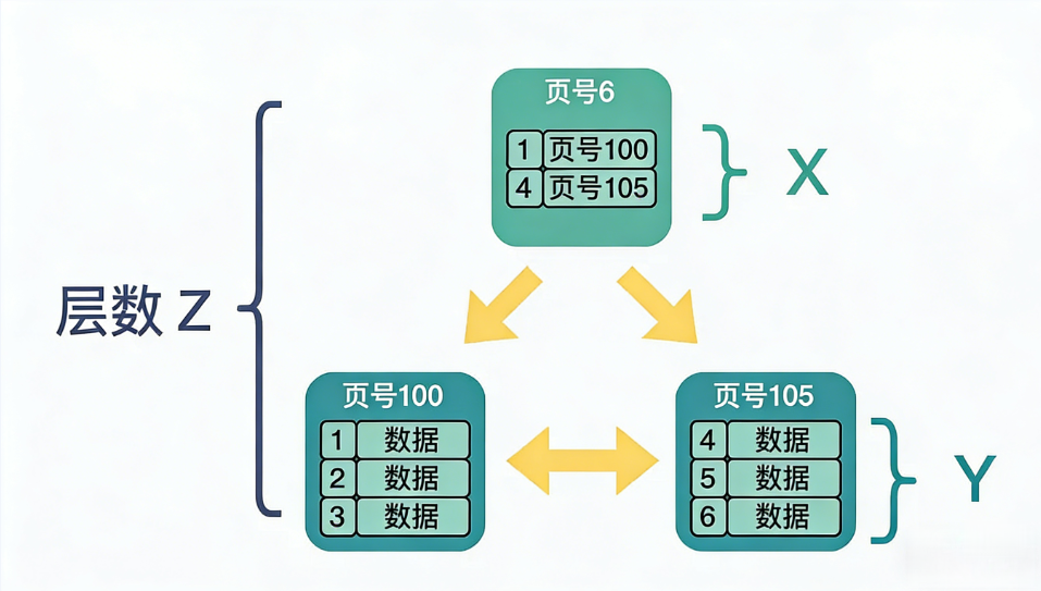 - 非叶子节点:仅存储索引键值 + 页指针(无实际行数据)。