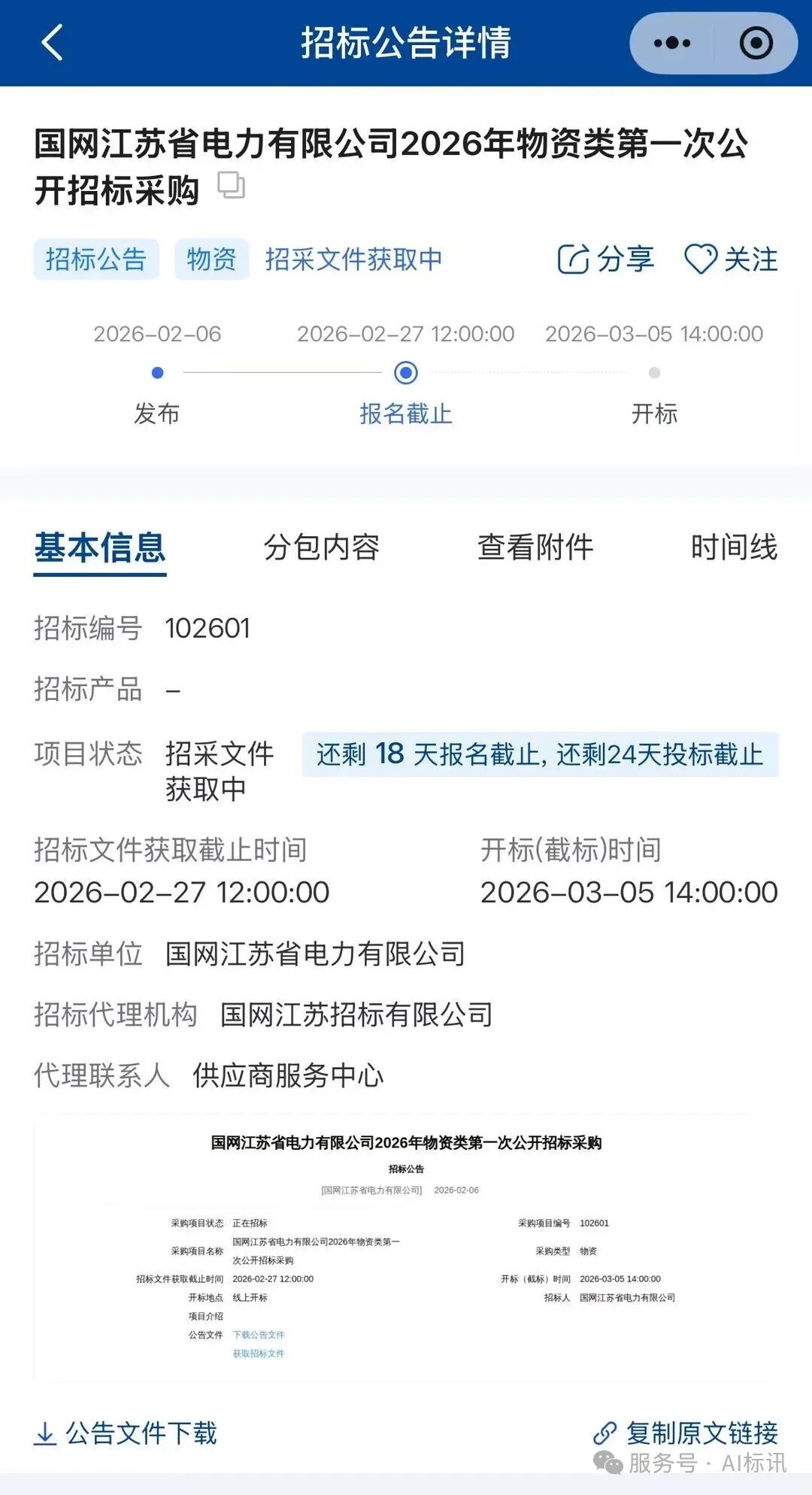 国网江苏省电力有限公司2026年物资类第一次公开招标采购正式发布,本次招标聚焦智能运维物资 核心品类,其中899套线路在线监测装置 成为集采重点,覆盖杆塔安全、覆冰防护、故障定位、灾害预警等六大核心场景。招标概览如下: