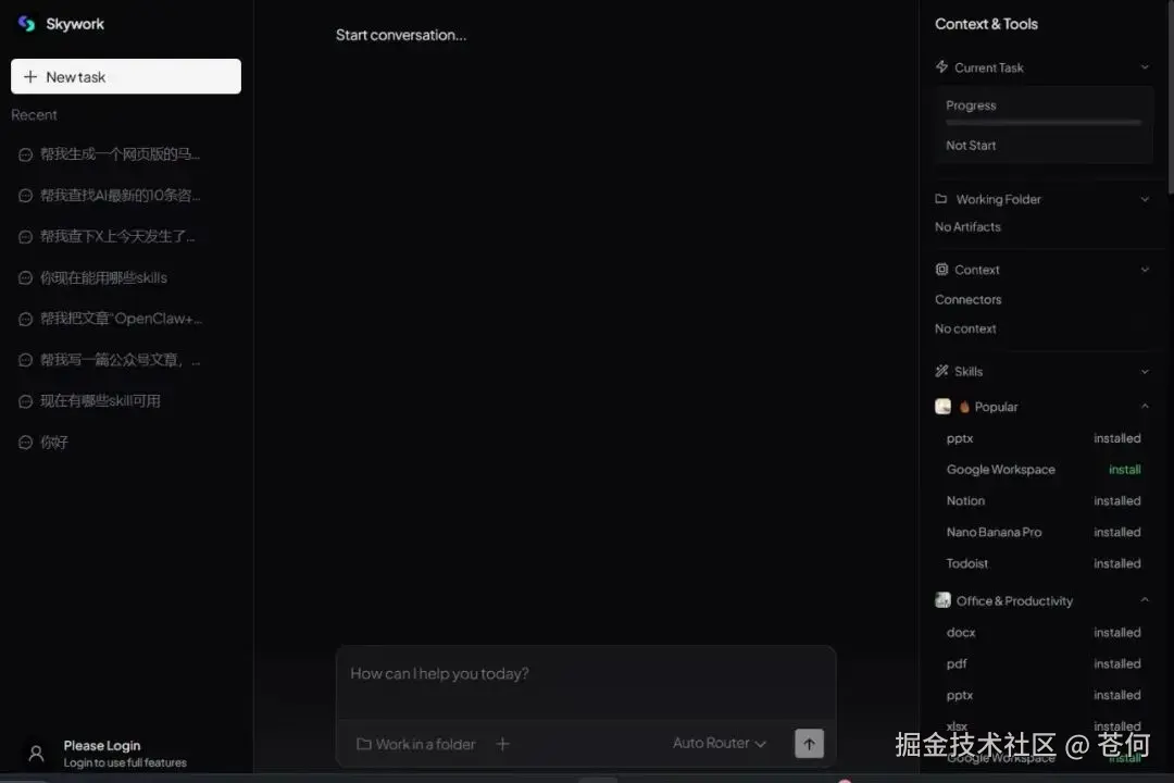 Skywork 桌面版给我的感觉,不仅仅是一个工具,它更像是一个懂我工作流的「数字打工人」。
