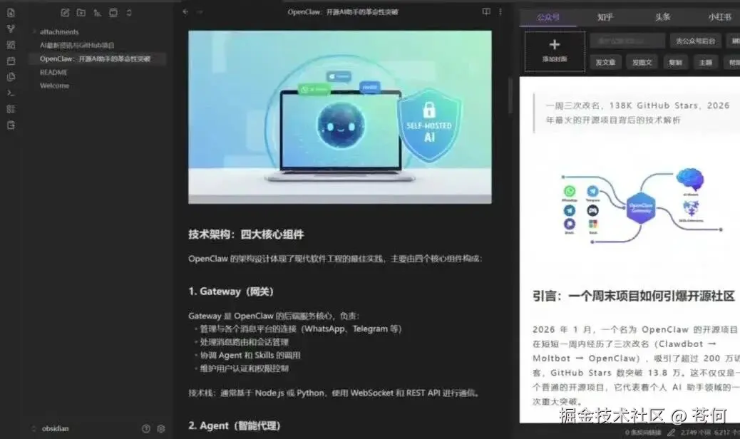 帮我写一篇公众号文章,是关于OpenClaw 的,需要搜集全网优质信息,自动帮我配图,适当的补充一些gif图,并调用obsidian技能,把文章放在obsidian文件夹下。
