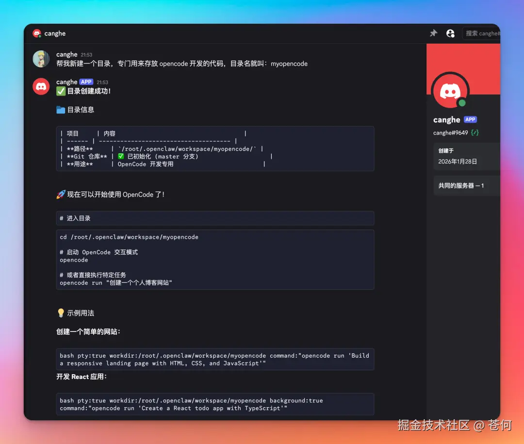| 21:53 | "帮我新建一个目录 myopencode" | 创建目录并初始化 git |