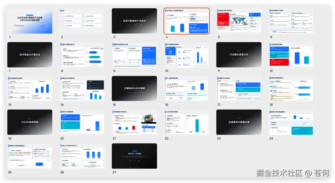 首先是在内容篇幅页数上,能很好的遵循指令,比如我明确需要25页左右,最终生成了 29 页,不仅准确理解了篇幅要求,内容质量也能保持稳定。