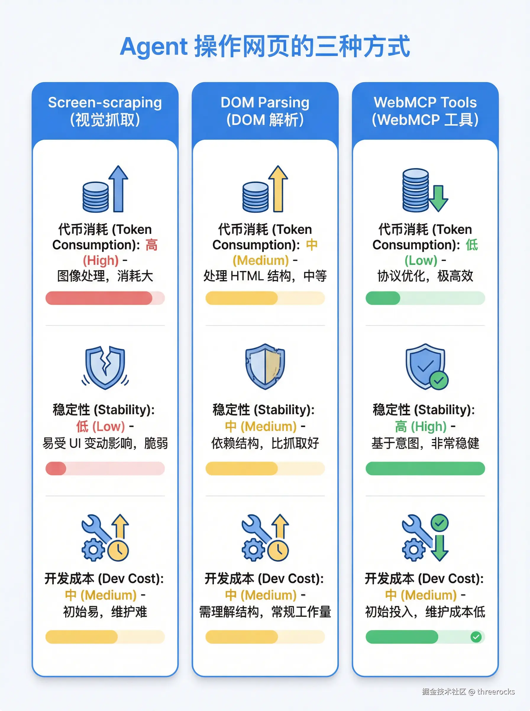 - 一条是"扒皮":读 DOM、读无障碍树、猜结构、网站一改版就崩,稳定性也不太行