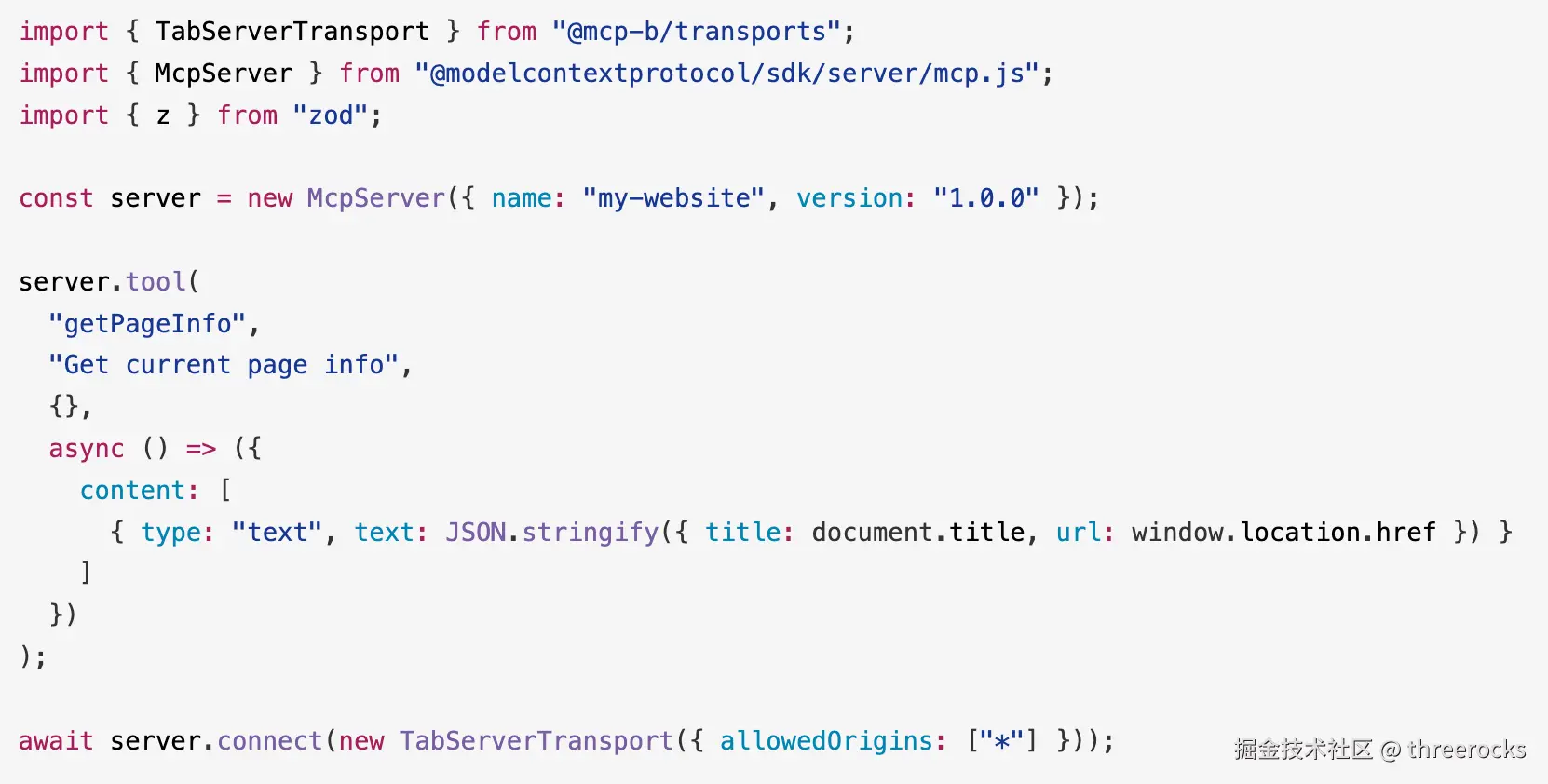 这是 Alex Nahas 那条路线,把 MCP TypeScript SDK 搬到浏览器里,用 postMessage 做传输,让扩展/客户端能发现并调用你页面里的工具。