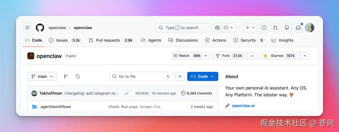 它原名叫 Clawdbot,是一个奥地利开发者 Peter Steinberger 搞出来的开源 AI Agent 项目。