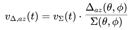 在单脉冲雷达中,和、差通道是同时形成的。因此,差通道(以方位差为例)接收到的信号为: