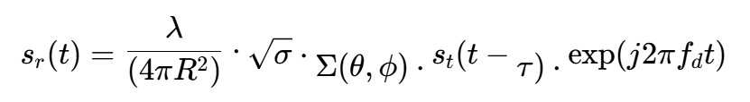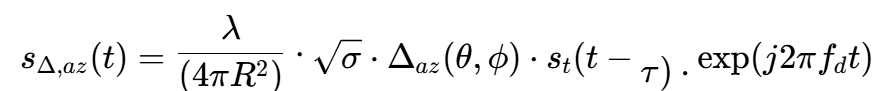 其中,λ是波长,σ是目标雷达截面积(RCS),τ=2R/c是双程延迟,fd是多普勒频率。