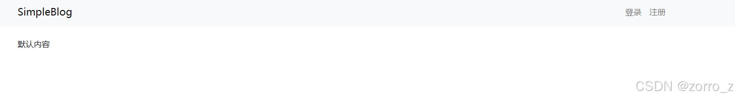 访问项目地址,顶栏导航是空的,只有"登录"和"注册"两个按钮。