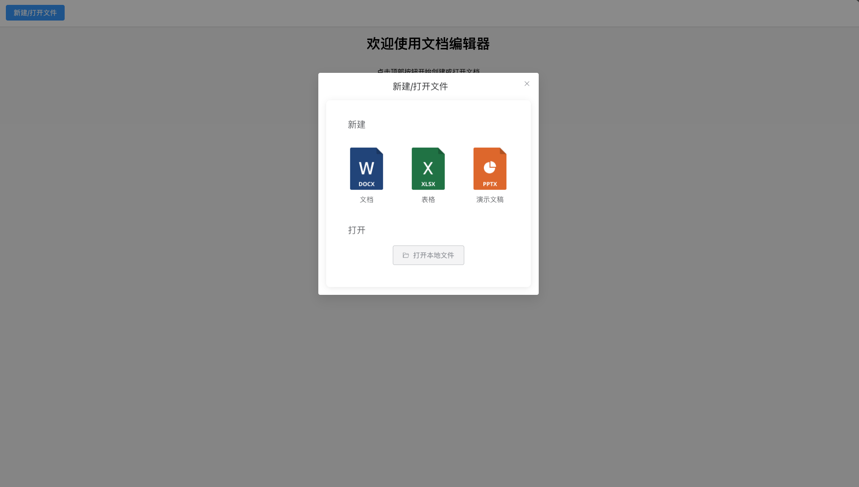 打开本地文件:用户直接在浏览器选择本地 Office 文件打开编辑。