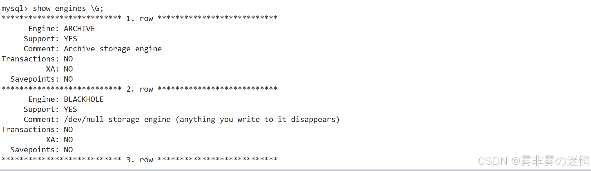 mysql> show engines \G -- 行显示