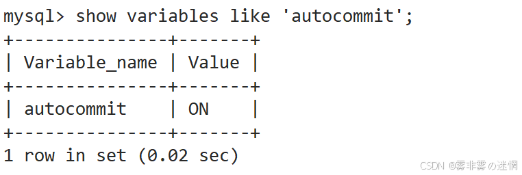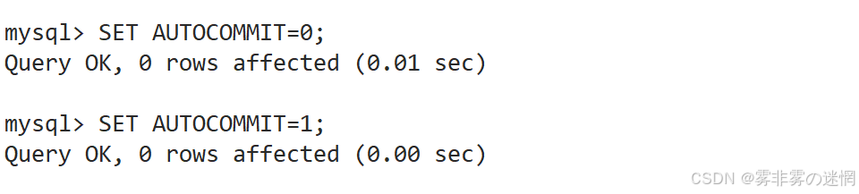 SET AUTOCOMMIT=1; #SET AUTOCOMMIT=1 开启自动提交