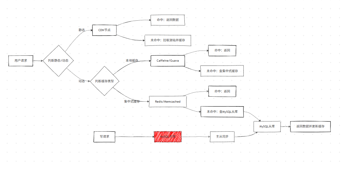 - 核心逻辑:静态内容缓存到全网 CDN 节点,用户就近访问,避免穿透到源服务器。