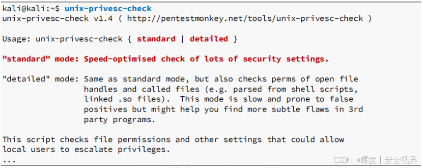 | 路径 | /usr/bin/unix-privesc-check(Kali 预装) |