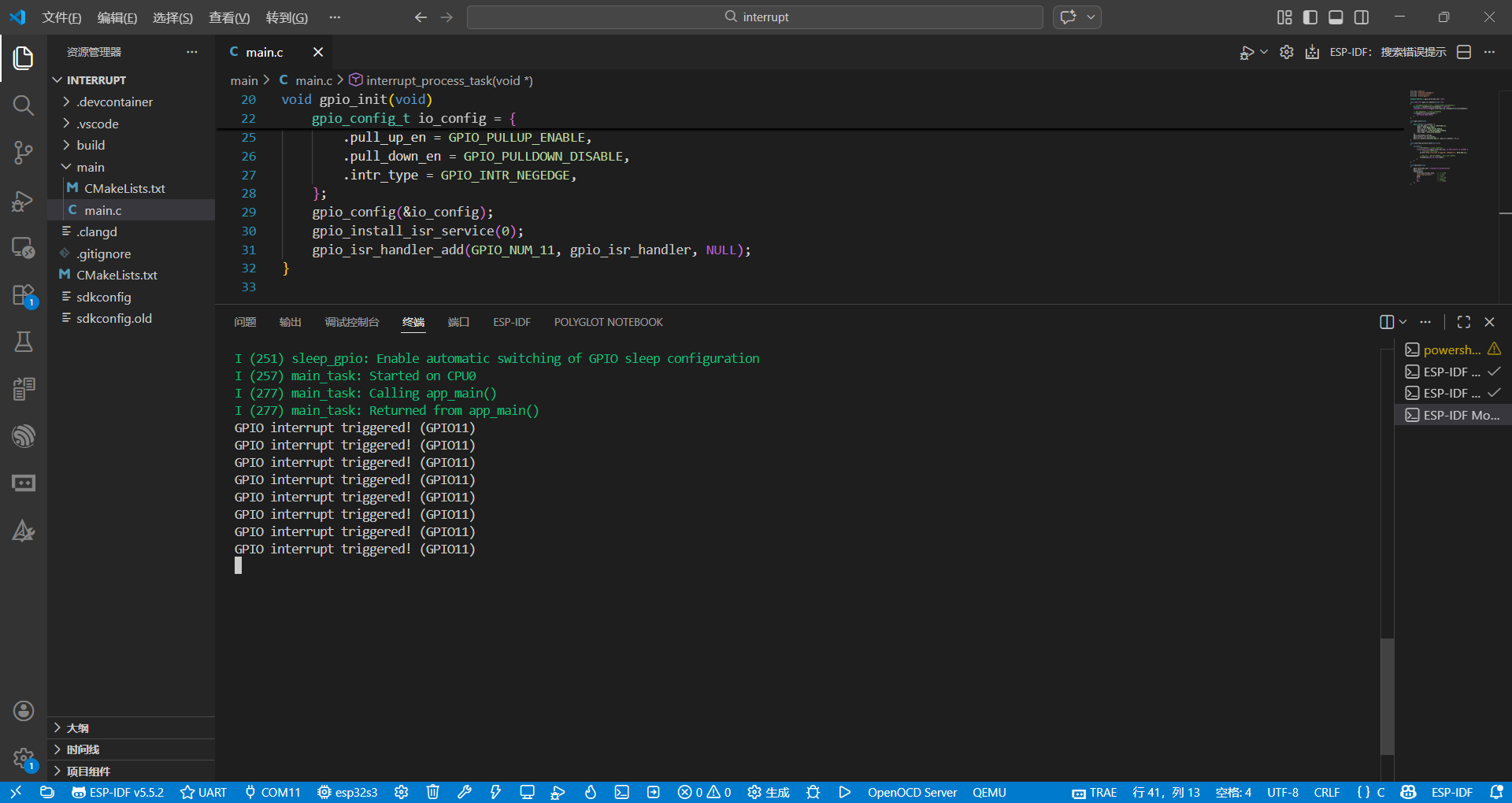 printf("基础中断触发!(GPIO%d)\n", GPIO_NUM_11);