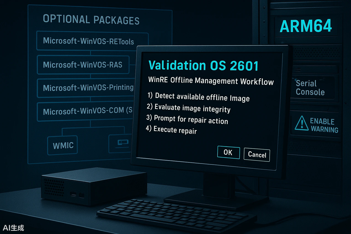 IT之家注:Validation OS 是微软推出的一款基于 Windows 11 的轻量级操作系统,主要供硬件制造商在工厂生产线上用于快速测试、验证和修复 PC 硬件缺陷,启动后直接进入命令行界面 (CLI),但具备运行 Win32 应用程序的能力。