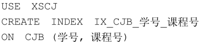 【例】 为CJB表创建非聚集索引IX_CJB_学号_课程号,该索引包括学号和课程号两个索引列,均按升序排列。