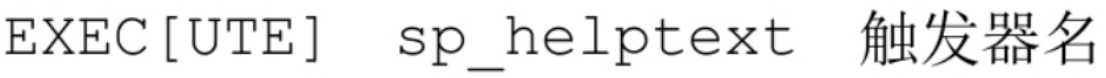 1)查看触发器的定义,即查看用于创建触发器的T-SQL语句。这对于没有创建触发器的T-SQL脚本文件的用户是很有用的。其语法格式如下。