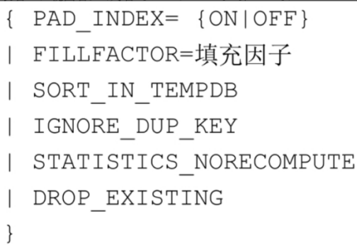 - DROP_EXISTING:用于在创建索引时删除并重建指定的已存在的索引,如果指定的索引不存在,系统会给出警告消息。