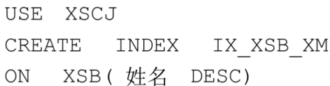 【例】 在XSB表的"姓名"列上创建一个非聚集索引,索引名为"IX_XSB_XM",并降序排列。