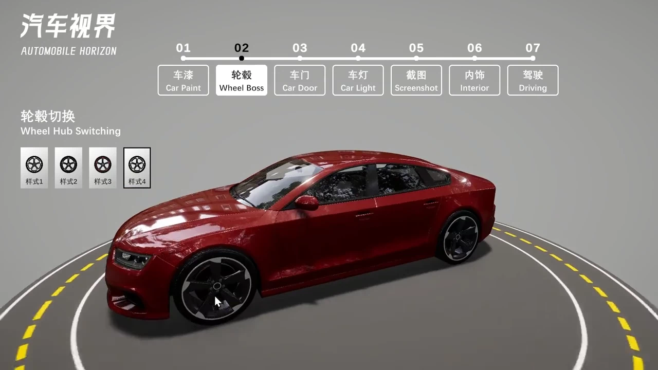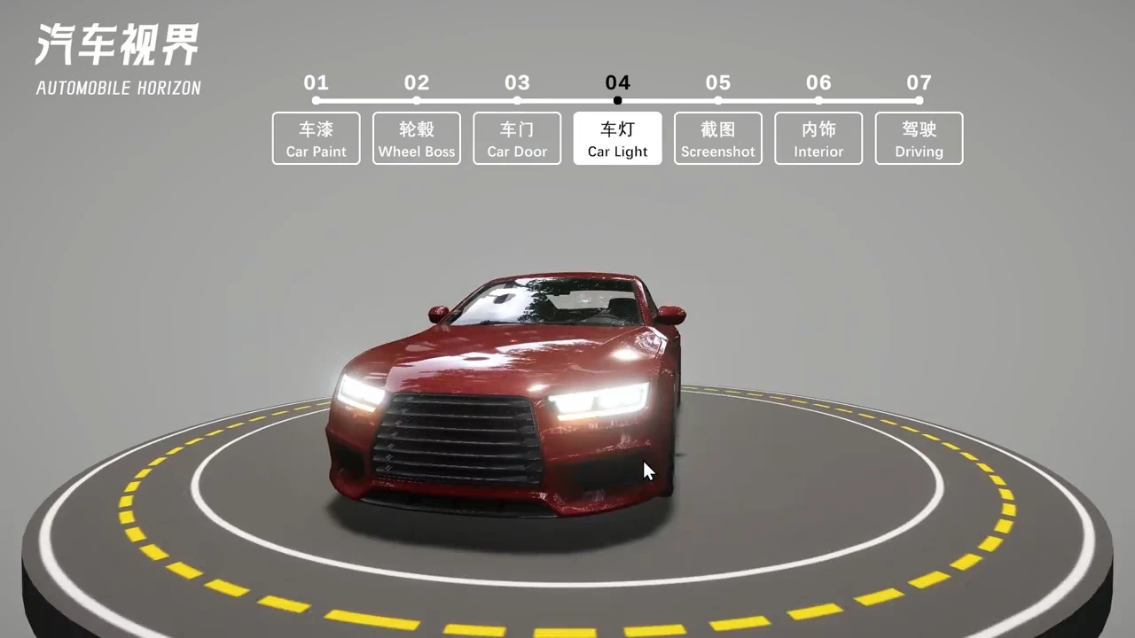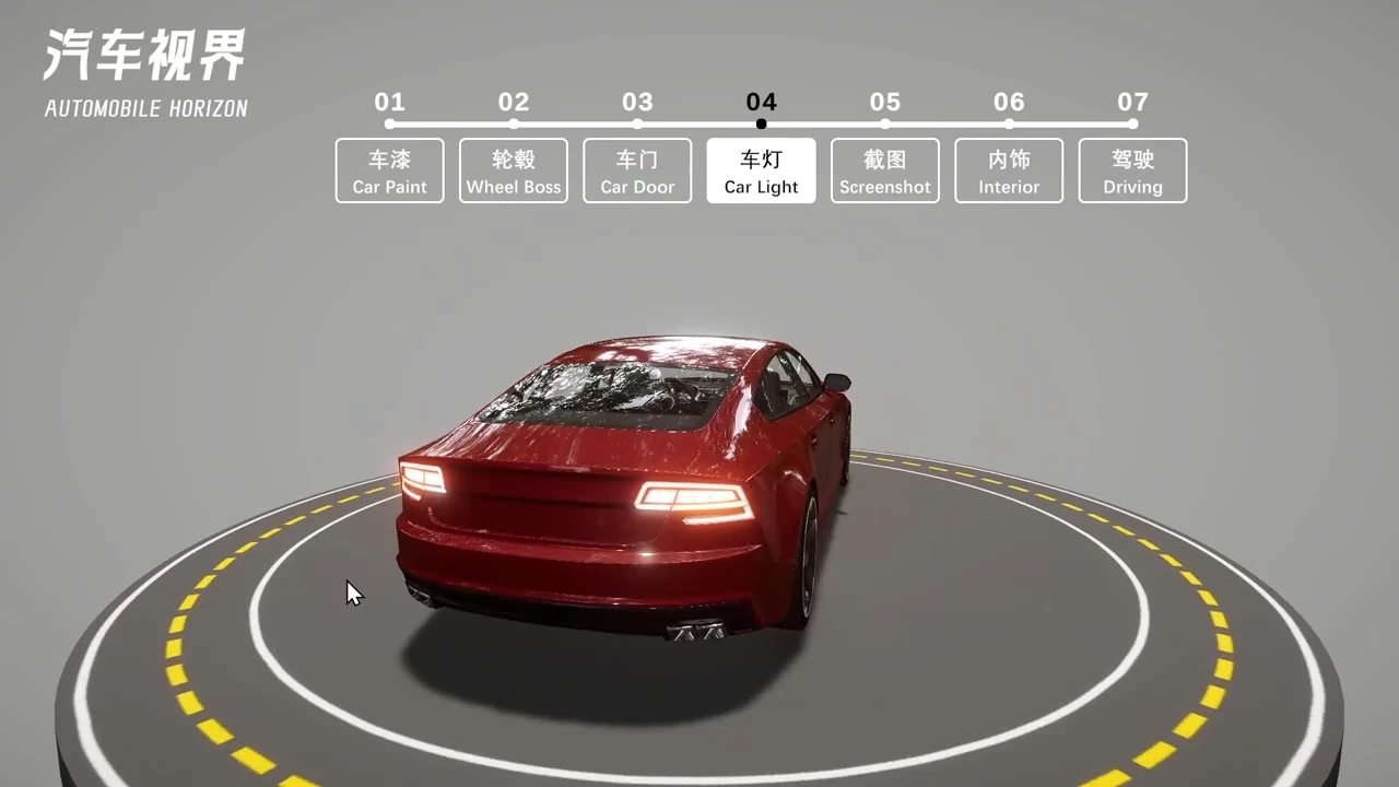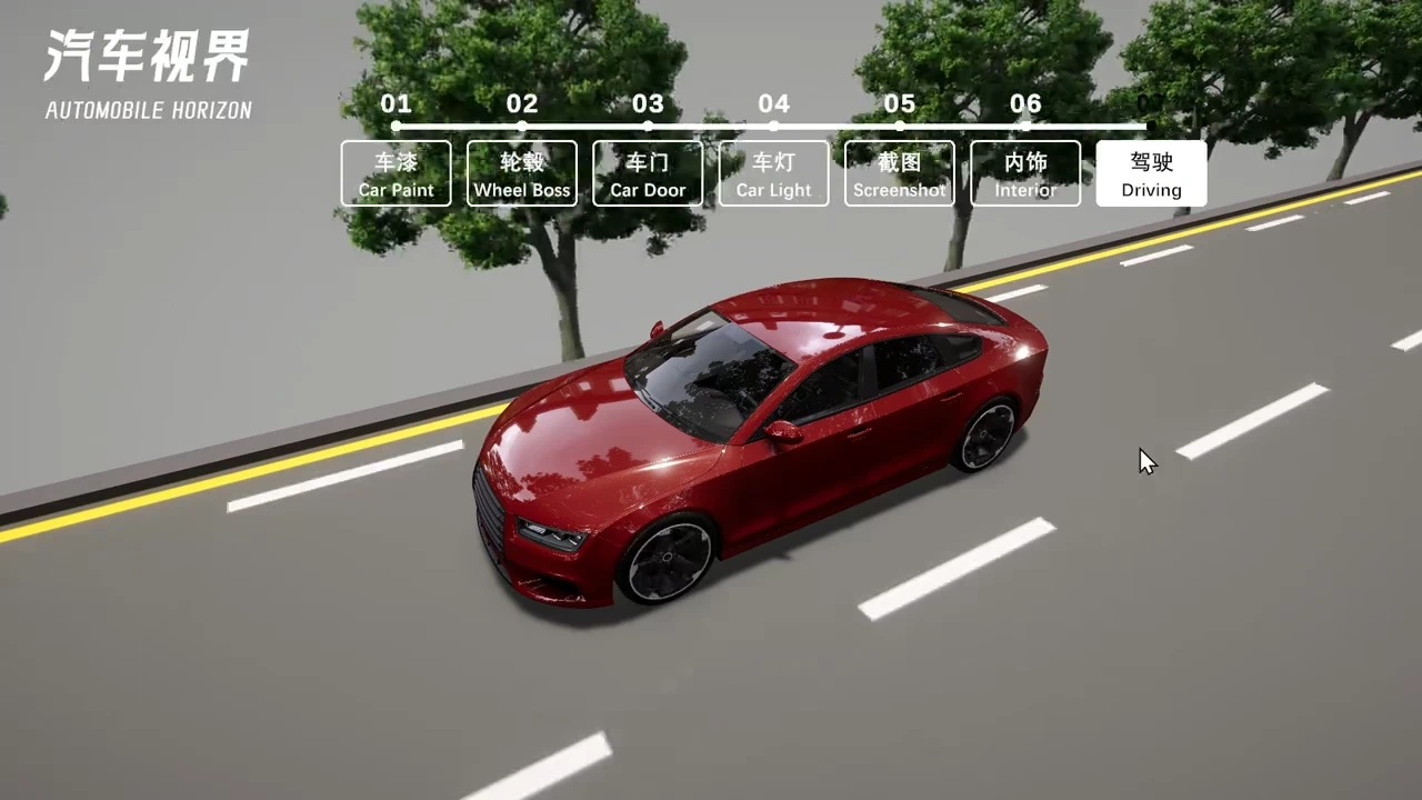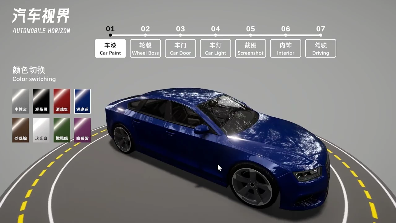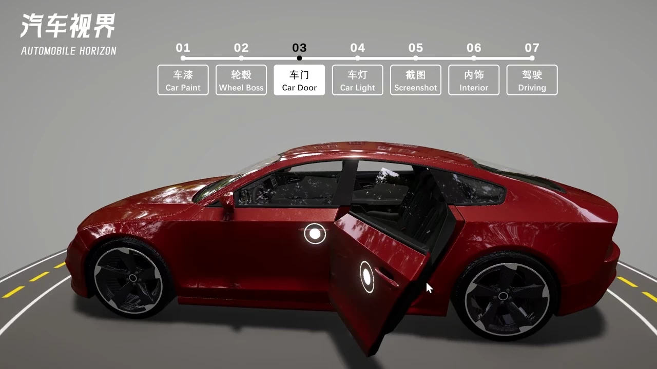 基于 Unity3D 开发汽车视界展示项目,支持8种车漆渐变、4种轮毂切换、车门与车灯控制、内外饰视角切换及模拟驾驶。可保存搭配截图用于购车参考,采用 URP 渲染管线优化性能,提升整体流畅度。