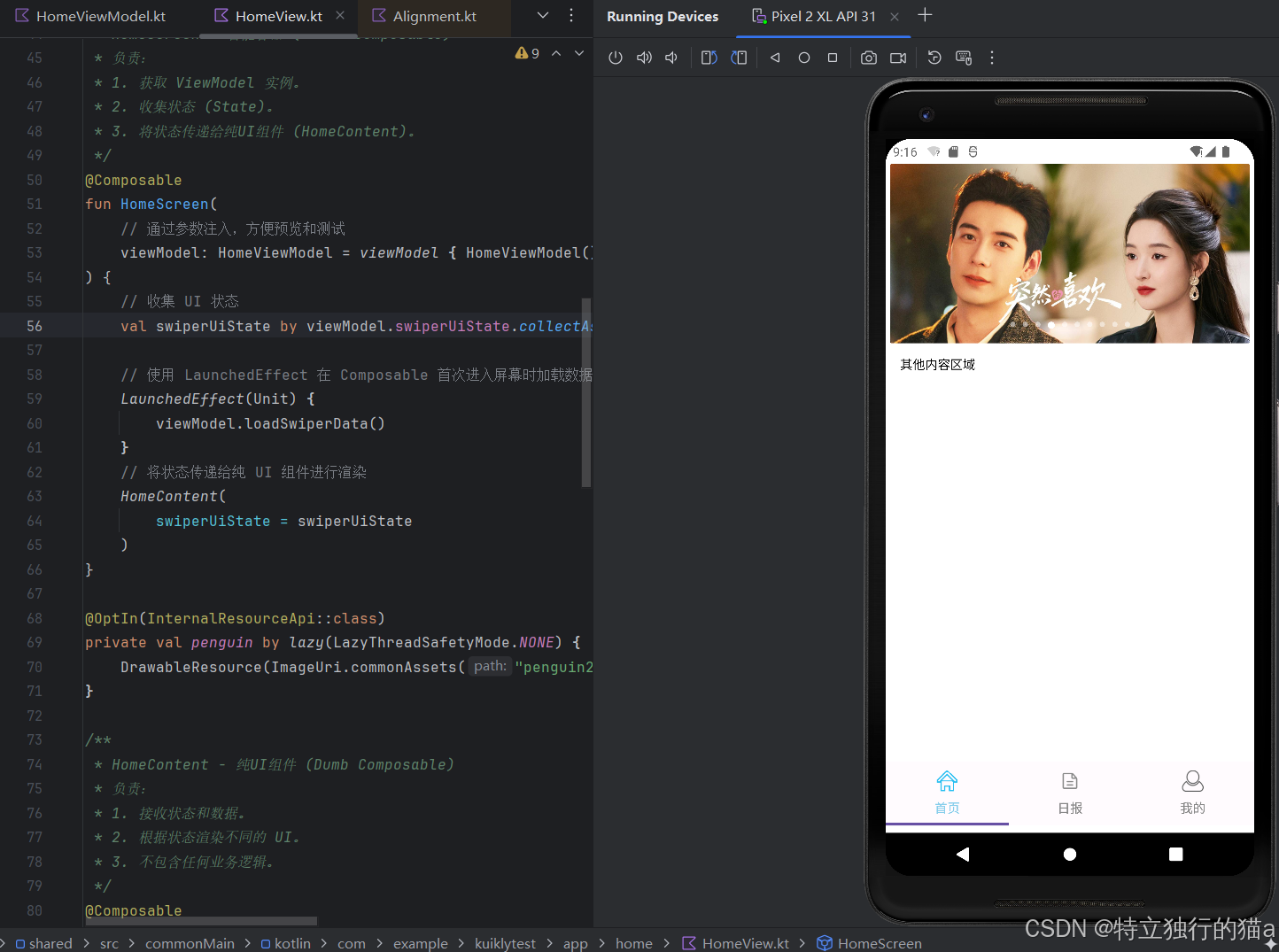 轮播图组件很常用,在移动互联网高速发展的今天,开发者面临着多平台适配、快速迭代、高性能渲染等多重挑战。腾讯开源的Kuikly框架应运而生,作为基于Jetpack Compose深度优化的跨平台开发框架,它重新定义了现代化移动应用的构建方式。