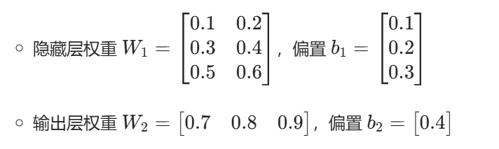 - 输入层:2 个特征(x1,x2),隐藏层:3 个神经元,输出层:1 个神经元