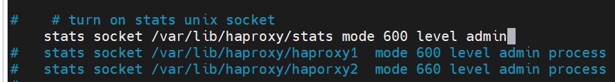 stats socket /var/lib/haproxy/stats mode 600 level admin