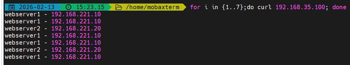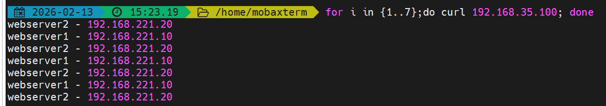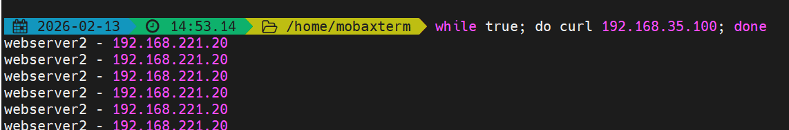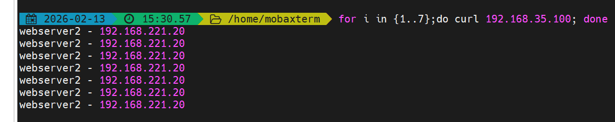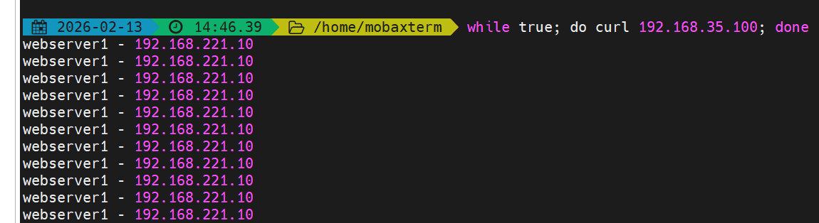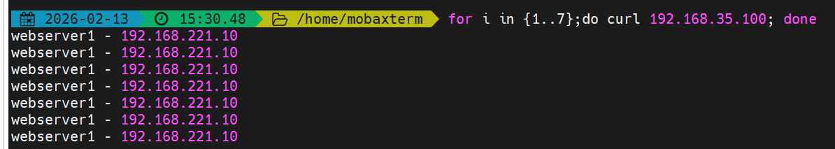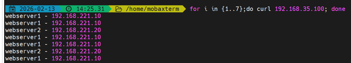 for i in {1..10}; do curl 172.25.254.100/index1.html; done
