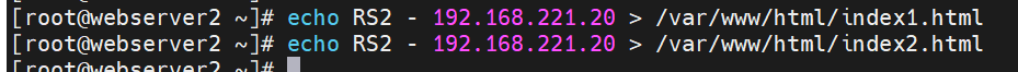 [root@webserver2 ~]# echo RS2 - 192.168.221.20 > /var/www/html/index2.html