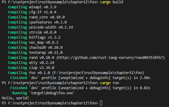 PS F:\rustproject\rustbyexample\chapter12\foo> cargo build