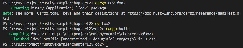PS F:\rustproject\rustbyexample\chapter12> cargo new foo