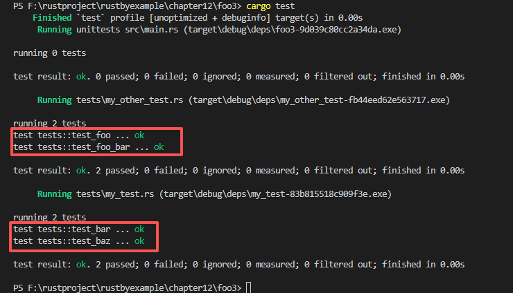 PS F:\rustproject\rustbyexample\chapter12\foo3> cargo test