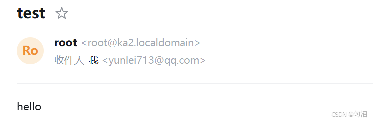 [root@KA2 yxs]# echo hello | mailx -s test yunlei713@qq.com