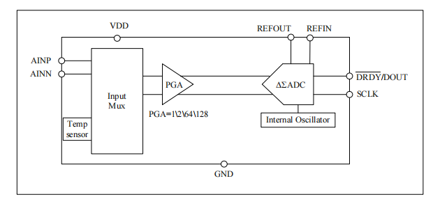 增益:可选PGA增益(1/2/64/128倍)