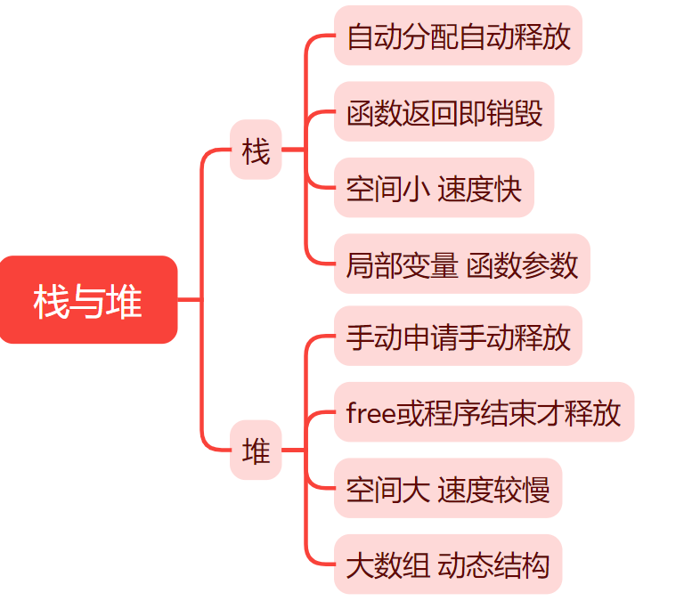 | 使用场景 | 局部变量、函数参数 | 大数组、动态数据结构 (链表) |