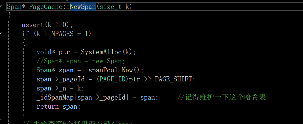 _idSpanMap[span->_pageId] = span; //// 起始页映射