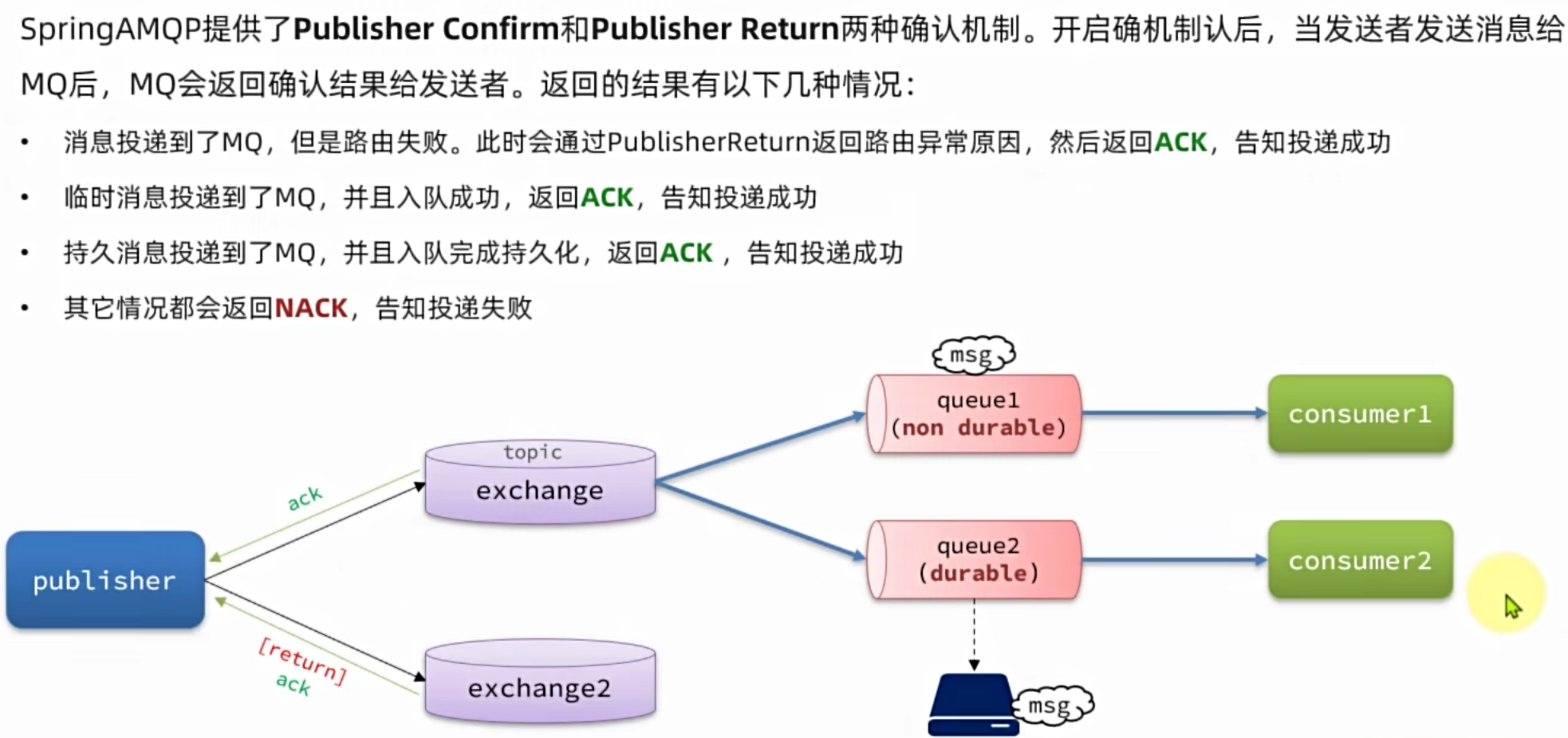 Spring AMQP提供了两种回调机制来确认消息投递状态: