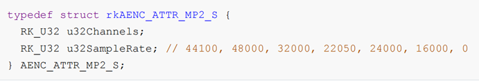 u32SampleRate **:**音频采样率,MP2的采样率范围是0-48000