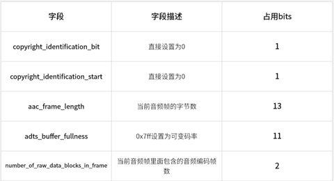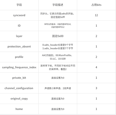 fwrite(aac_header, 1, 7, aac_file); // 对每一帧 AAC 码流写入 adts_header 头部