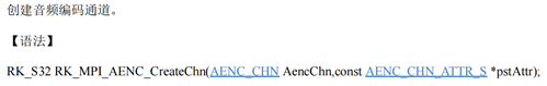 ret = RK_MPI_AENC_CreateChn(AENC_CHN,&aenc_chn_attr);