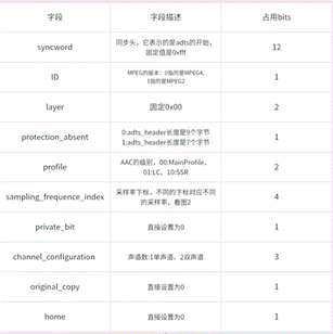 fwrite(aac_header, 1, 7, aac_file); //对每一帧AAC码流写入adts_header头部